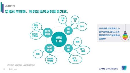 对于消费者来说,“减糖”的重点是减少在各种加工类食品中的“游离糖”。而另一方面,消费者对健康功能性产品的需求又在迅速增长,这就给企业的产品创新带来了许多的机会。将燃脂健身、肠道健康等产品中叠加“减糖”概念,是否可以进一步引发消费者选购的欲望?是品牌创新的突破口。