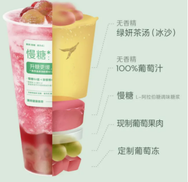 喜茶“慢糖”配方水果茶,使用L-阿拉伯糖调味糖浆,低GI慢升糖